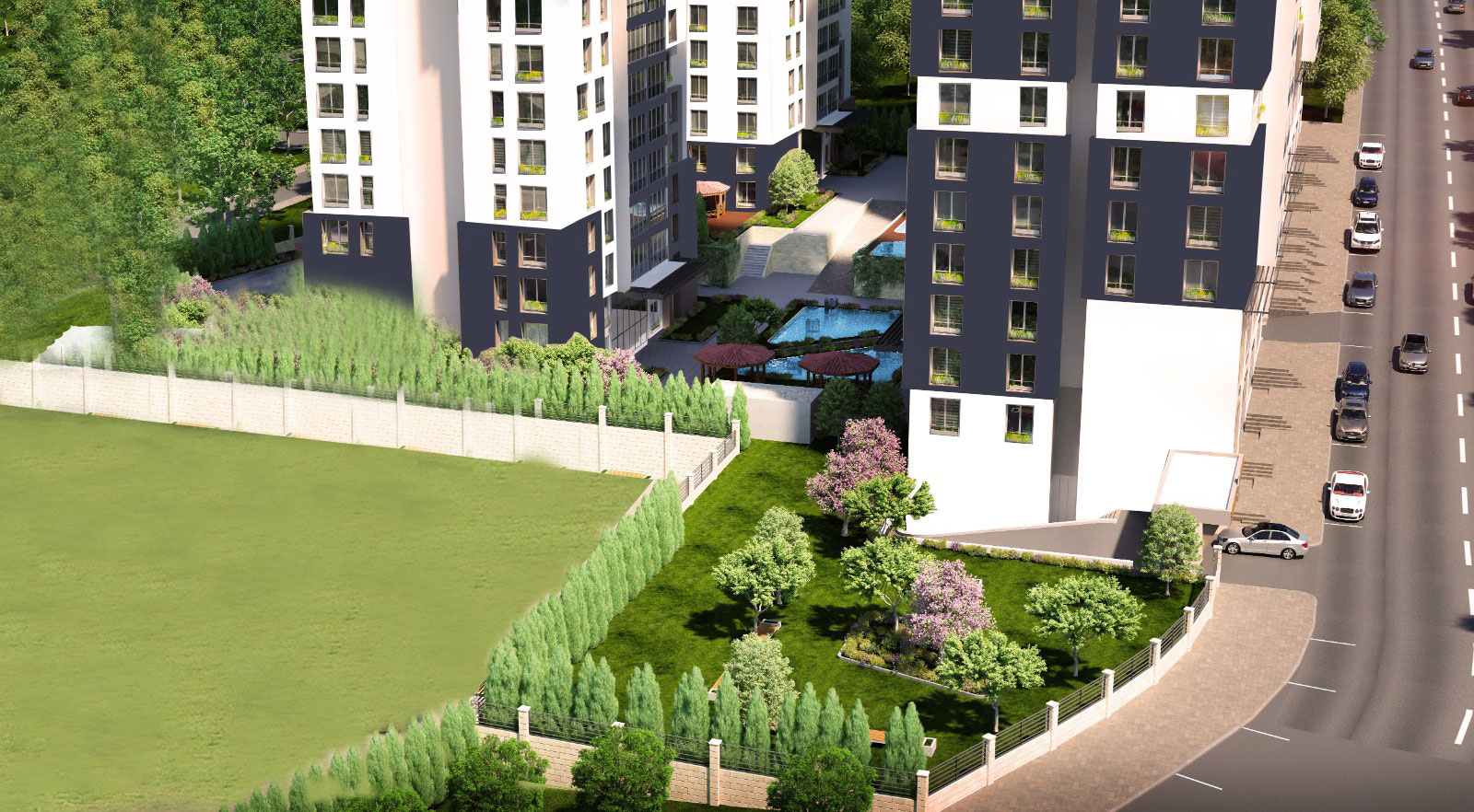 – Site layout with children’s playgrounds and other social facilities,