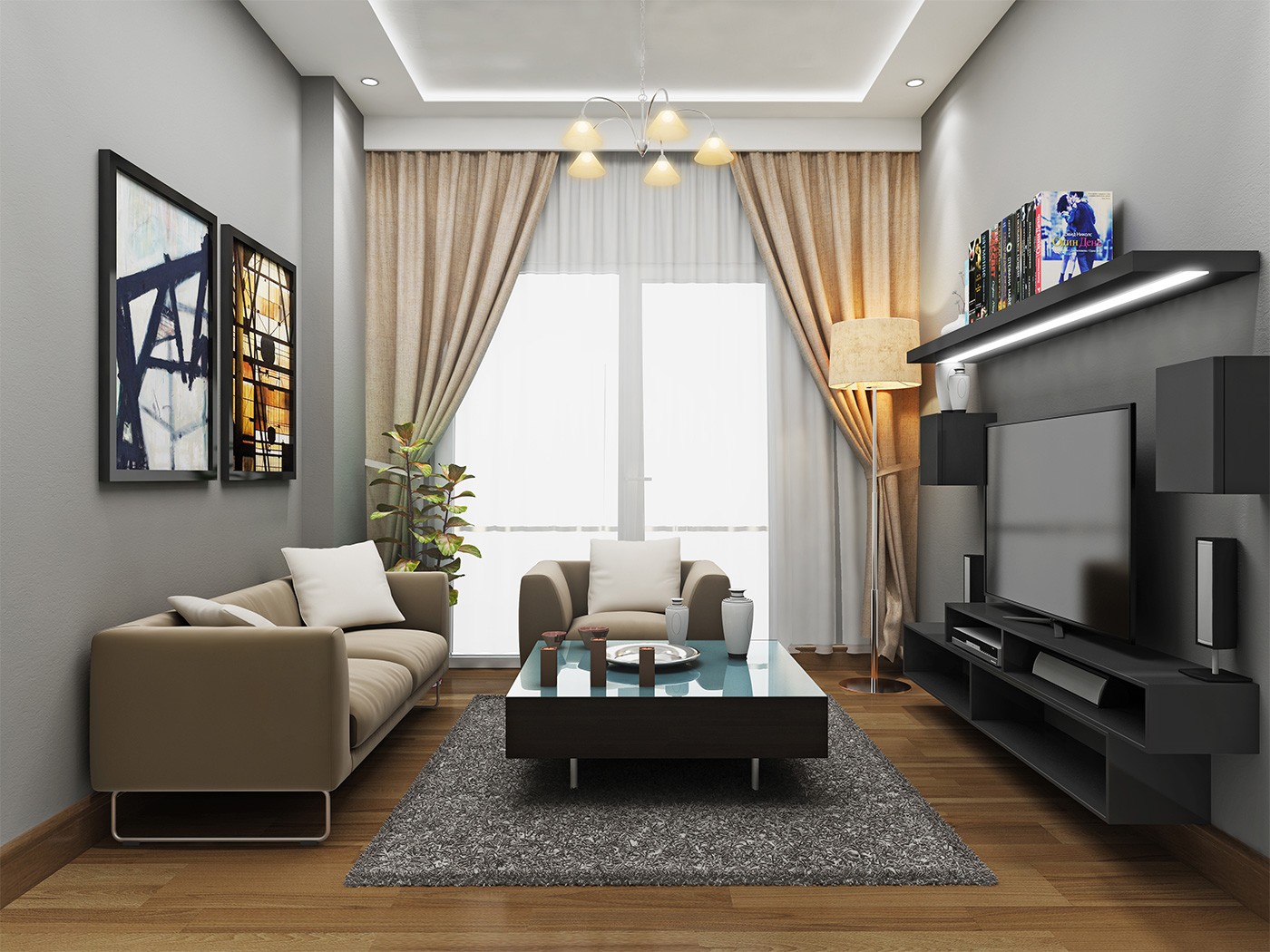 • Salon ve odaların zeminleri dekoratif laminat parke,