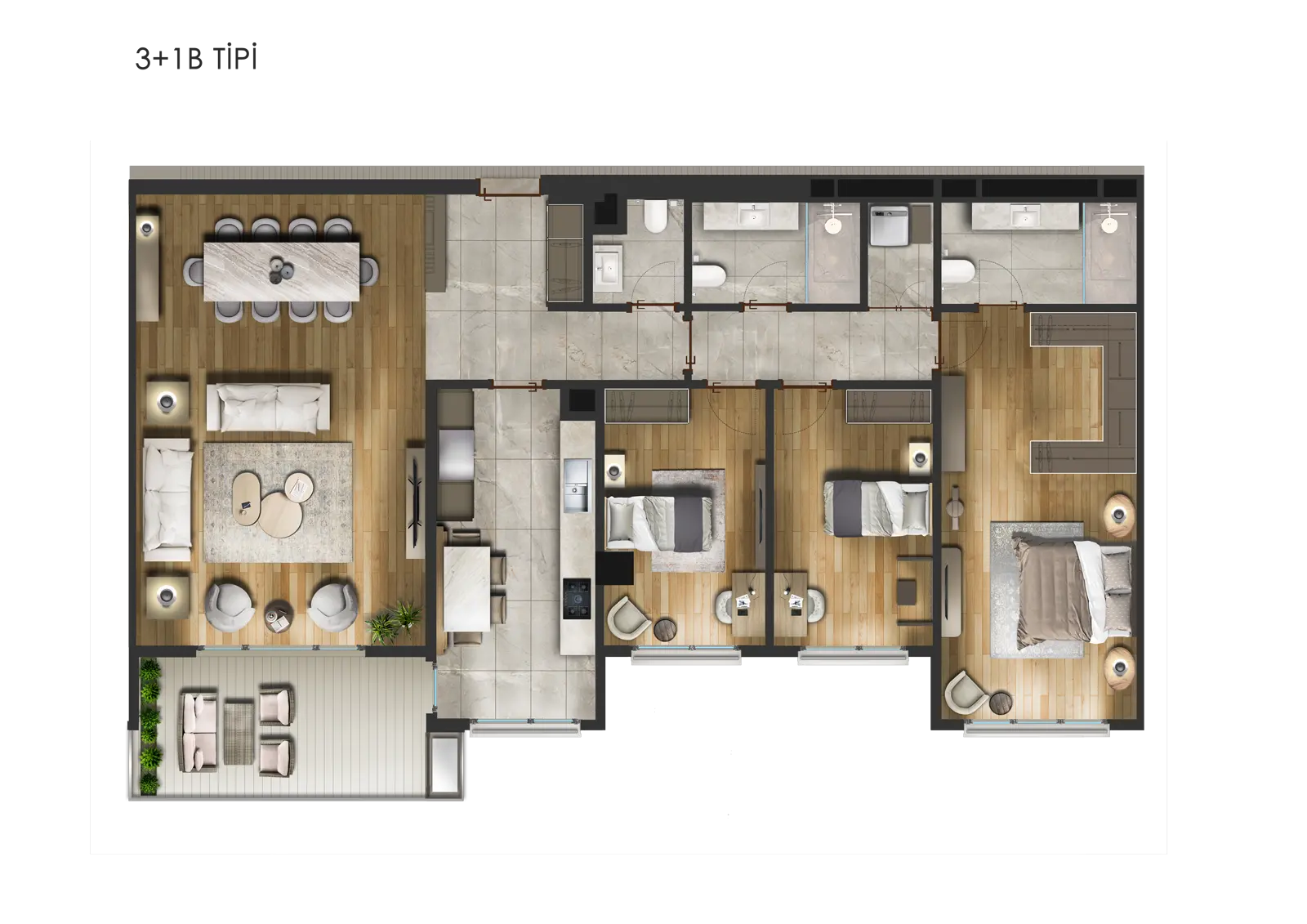 Daire Tipleri : 1+1 – 2+1 – 2,5+1 – 3+1 – 3+1 Dubleks – 4+1 – 4,5+1 Dubleks – 4,5+2 Dubleks – 5,5+2